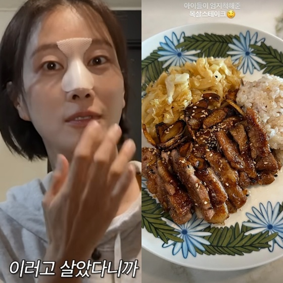 이현이는 20일 자신의 인스타그램을 통해 "아이들이 엄지척해준 목살 스테이크"라는 글과 함께 한 장의 사진을 공개했다.