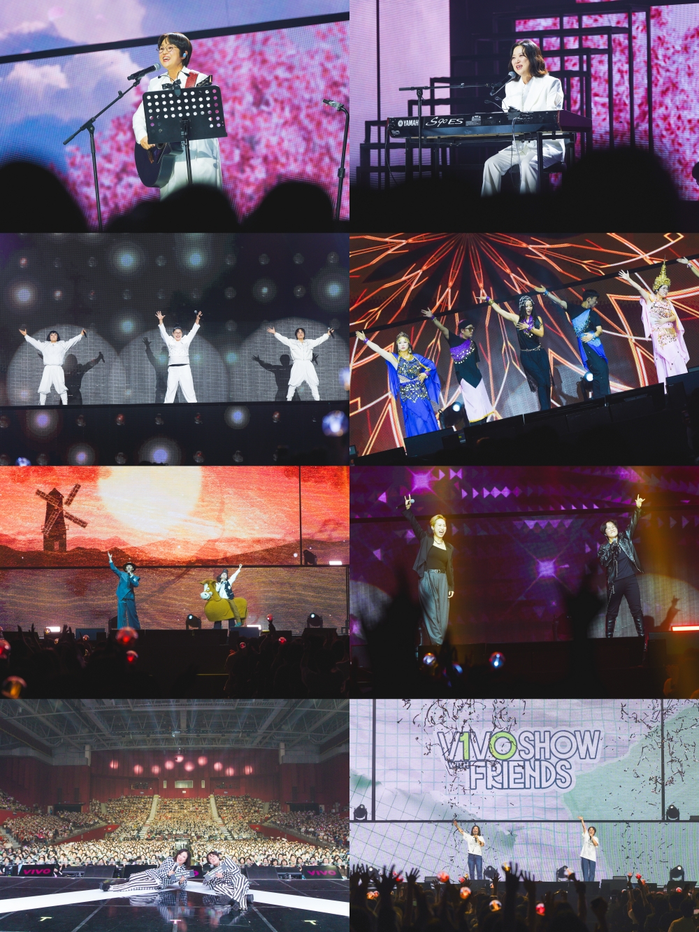 엔딩 무대에서는 더블V의 '7도'와 '그대와의 노래'가 연이어 울려 퍼졌다. 특히 관객들이 준비한 슬로건 '함께라서 빛날 거야. 더블 V ♥ 땡땡이'가 등장하자, '대문자 T' 송은이마저 눈시울을 붉히며 감동을 표했다. '비보쇼'는 웃음과 눈물이 교차하는 진한 감동으로 무대를 물들이며 3일간의 여정을 마무리, 관객과 하나 되는 특별한 추억을 선사했다.