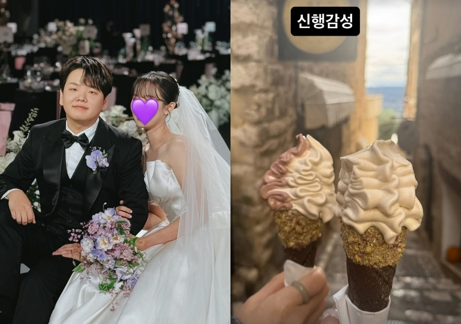 이어 곽튜브는 먹음직스러운 아이스크림 사진을 공개했다. 신부와 함께 다정하게 아이스크림을 들고 찍은 것으로 보인다. 곽튜브는 "신행 감성"이라고 적어 달콤한 신혼여행의 분위기를 물씬 풍겼다.