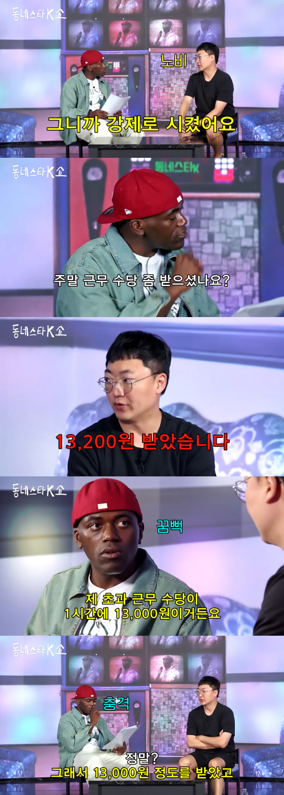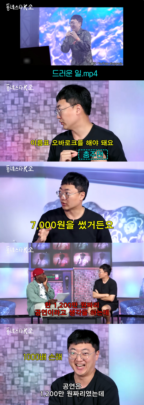 조나단은 "이렇게 개고생한 축하 무대에 대한 근무 수당은 좀 받으셨냐"고 물었고, 충주맨은 "놀라지 마라. 제가 무려 1만 3,200원을 받았다"고 밝혀 충격을 자아냈다.
