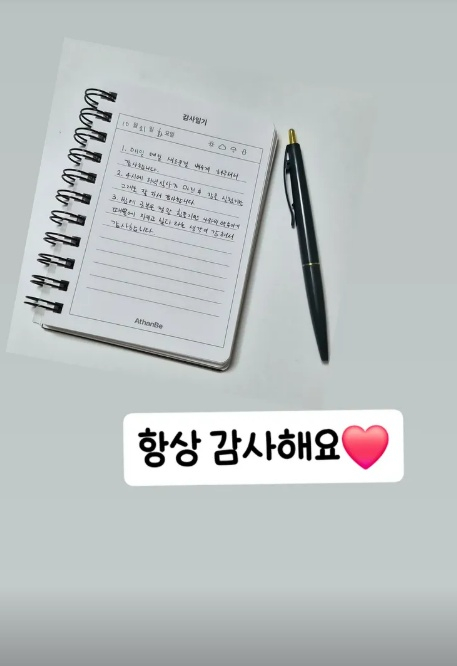 또 박수지는 매일 '감사일기'를 쓰며 마음을 다스리는 모습도 전했다.