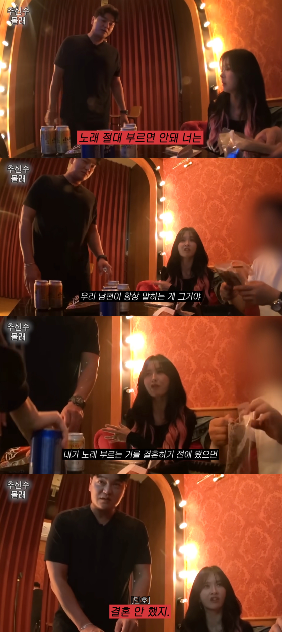 하원미는 황당한 표정을 지으며 "(추신수가) 항상 말하는 게 있다. 내가 노래 부르는 걸 결혼하기 전에 봤으면 결혼을 안 했을 거라고 하더라"고 말했다.