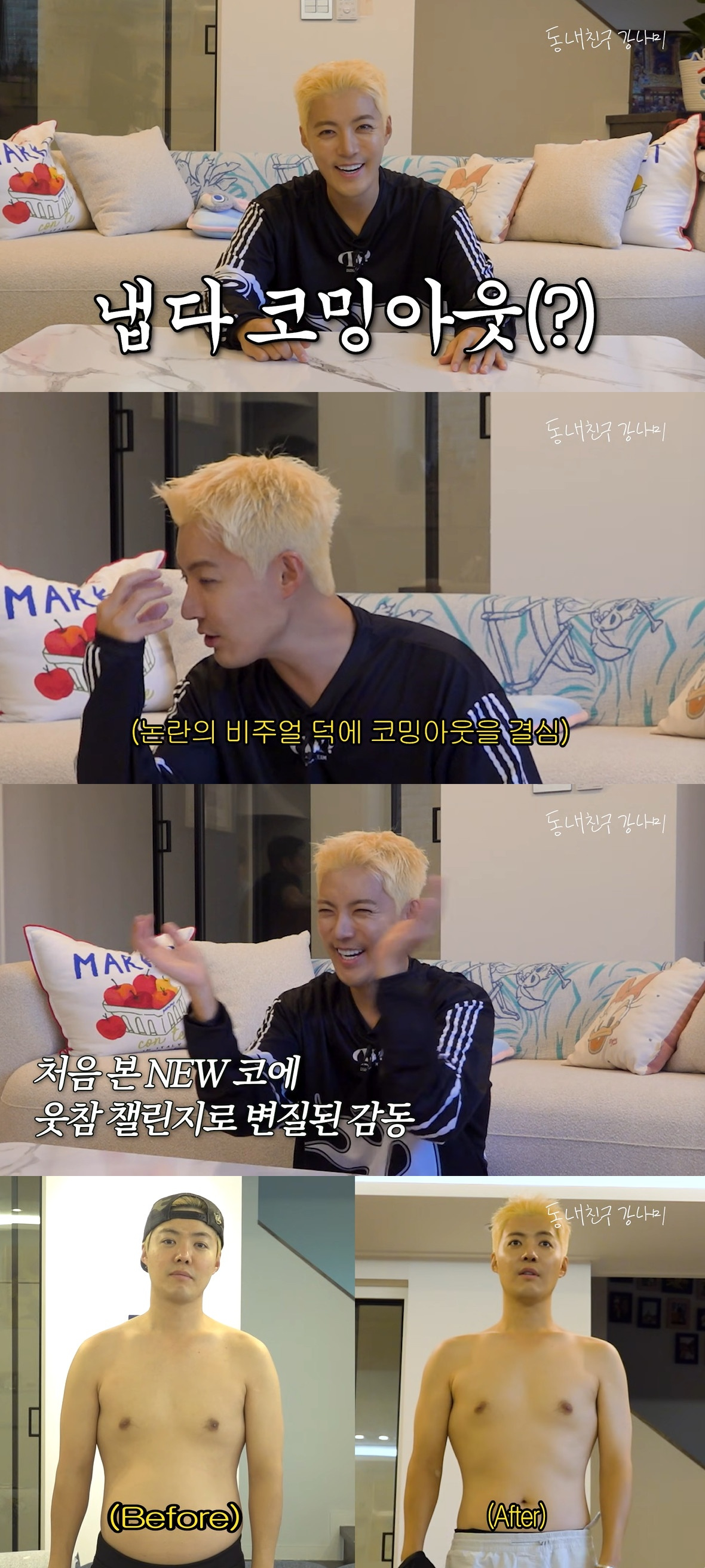 그는 13kg 감량에 성공하기도 했다고. 강남은 "올해 살 찐 모습을 보여주려고 이전 영상을 찍었는데 편집한 걸 보고 이거 내보내면 안 되겠다 싶어서 안 내보낸 영상이 있다"며 영상을 공개했다. 다이어트 전 강남은 뱃살이 있었다면, 러닝으로 다이어트한 그는 뱃살이 완전히 삭제된 모습을 보였다. 또한 각진 어깨까지 드러내 놀라움을 자아냈다.