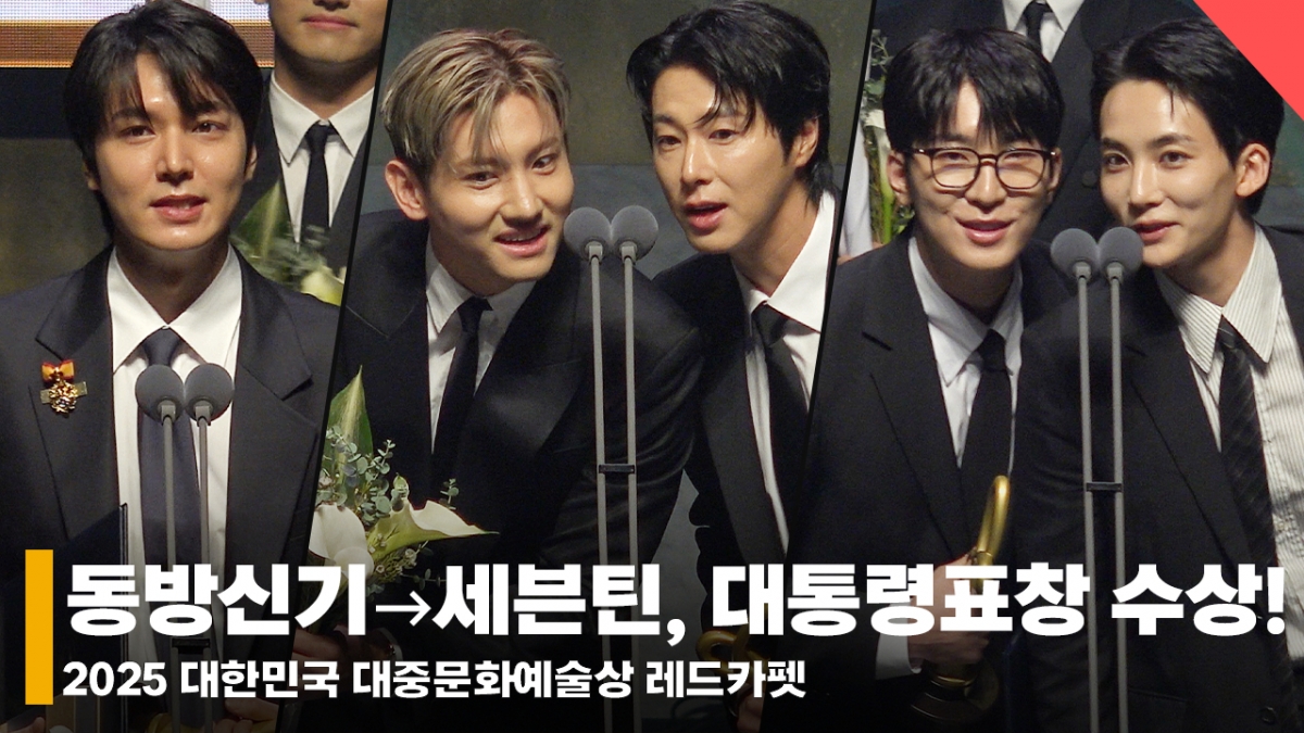 연예방송동방신기부터 세븐틴까지, 자랑스러운 대통령표창 수상자들 [영상]발행 : 2025.10.23 ・ 20:50전시윤 기자왼쪽부터 배우 이민호, 동방신기 최강창민-유노윤호, 세븐틴 정한-원우 /사진=전시윤 기자23일 오후 서울 중구 장충동 국립극장 문화회관에서 2025 대한민국 대중문화예술상 레드카펫이 열렸다.이날 배우 김미경, 이민호, 이정은, 가수 동방신기, 블랙핑크 로제, 세븐틴, 성우 김은영이 대통령표창을 수상, 수상 소감을 전하고 있다.<저작권자 © 스타뉴스, 무단전재 및 재배포 금지>세븐틴동방신기이민호세븐대통령표창추천 기사전시윤 기자기자홈좋아요 연예-방송의 인기 급상승 뉴스연예-방송의 최신 뉴스