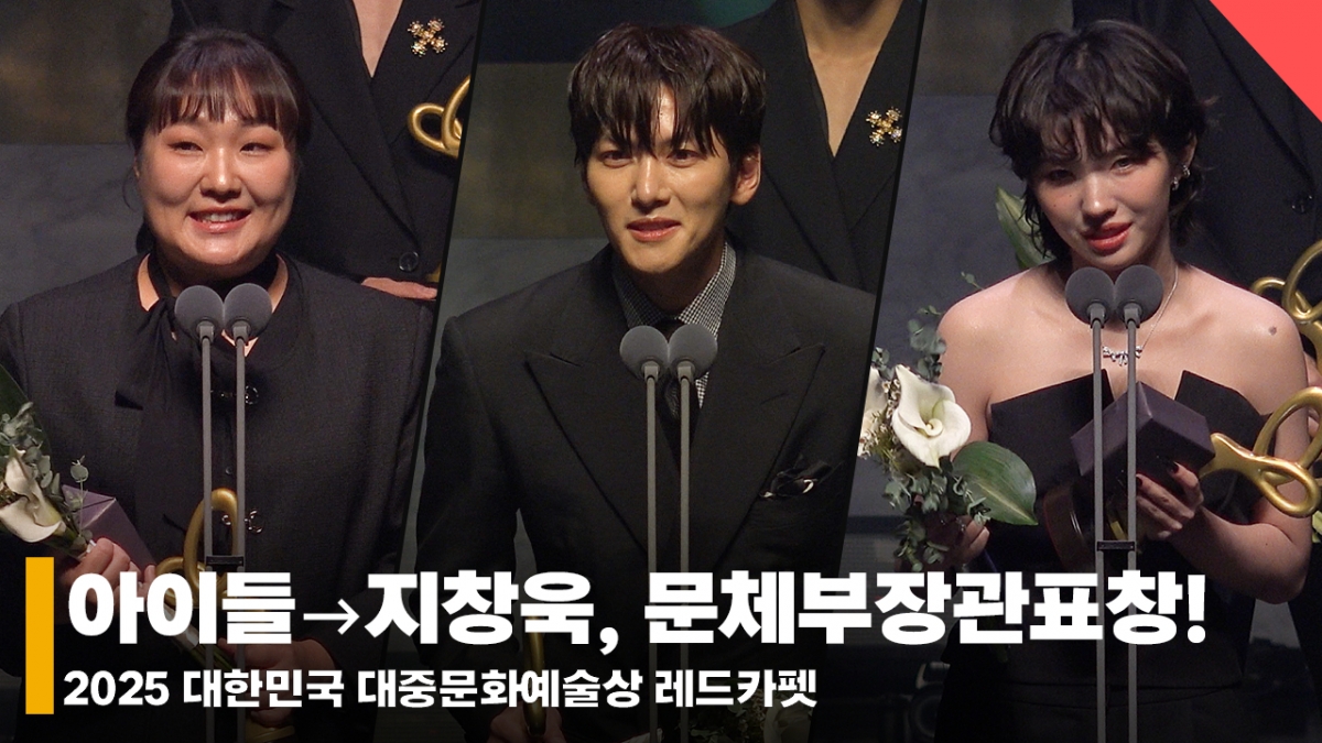 연예방송아이들부터 지창욱까지, 문체부장관표창 수상자들! [영상]발행 : 2025.10.23 ・ 21:07전시윤 기자왼쪽부터 개그우먼 이수지, 배우 지창욱, 아이들 소연 /사진=전시윤 기자23일 오후 서울 중구 장충동 국립극장 문화회관에서 2025 대한민국 대중문화예술상 시상식이 열렸다.이날 배우 고윤정, 변우석, 지창욱, 추영우, 가수 라이즈, 아이들, 르세라핌, 제로베이스원, 희극인 이수지, 안무가 베베가 문체부장관표창을 수상, 수상 소감을 전하고 있다.<저작권자 © 스타뉴스, 무단전재 및 재배포 금지>아이들소연이수지지창욱추영우아이추천 기사전시윤 기자기자홈좋아요 연예-방송의 인기 급상승 뉴스연예-방송의 최신 뉴스