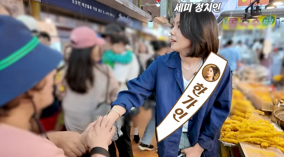 배우 한가인이 망원시장에서 선거 유세급 존재감을 뽐냈다.