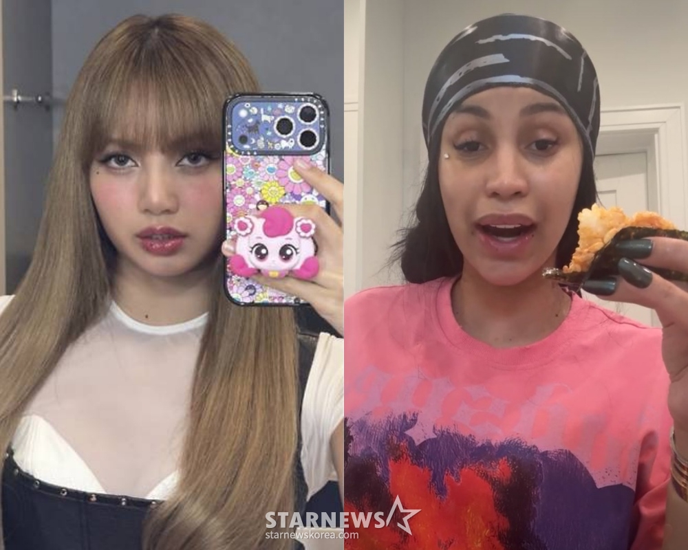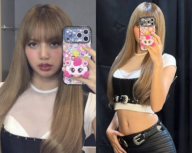 사진 속 리사는 분홍색 컬러감이 인상적인 하츄핑 그립톡을 손가락 사이에 낀 채 사진을 찍고 있다. 시크한 리사의 표정과 하츄핑 캐릭터가 대비돼 더 큰 인상을 남겼다.