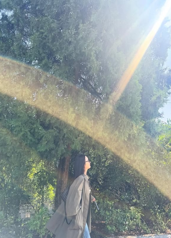 사진을 본 네티즌들은 "태양도 미인을 알아본다", "가을가을 예쁘다"라는 등의 반응을 보였다.