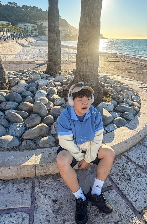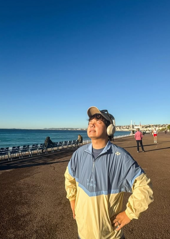 게재된 사진에는 신혼여행 중 바닷가에서 러닝을 한 곽튜브의 모습이 담겨 있다. 사진 속 곽튜브는 운동복 차림에 모자와 헤드폰을 착용하고 있는 모습이다.