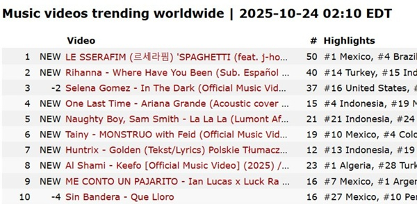 글로벌 걸그룹 르세라핌이 방탄소년단 BTS의 제이홉(j-hope)과 손을 잡고 선보인 첫 번째 싱글 앨범 '스파게티'가 발매 10시간 만에 글로벌 챠트를 강타하고 있다.