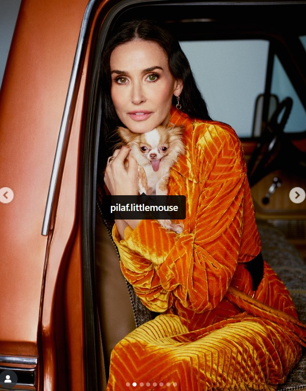 최근 공개된 커버 화보에서 데미 무어는 마치 살아있는 마네킹처럼 세련된 포즈를 연출했다. 그녀가 착용한 의상은 해리스 리드(Harris Reed) 디자인으로, 스위트하트 네크라인과 가슴 부분의 대담한 컷아웃 디테일이 돋보이는 검은색 마이크로 보디수트였다.