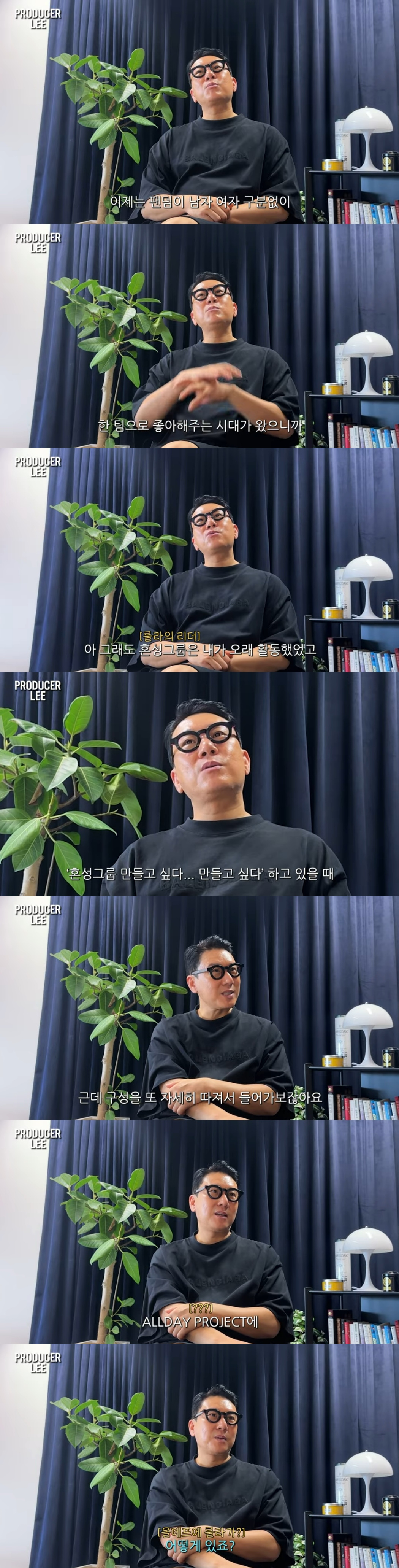 이날 이상민은 "이제는 팬덤이 남자 여자 구분 없이 한 팀으로 좋아해주는 시대가 왔다. 혼성 그룹은 내가 오래 활동했었고 샵도 만들었었고 나도 잘 만들 수 있을텐데, '혼성 그룹 만들고 싶다'라고 있을 때 올데이 프로젝트가 나온 거다"라고 말했다. 이상민은 1990년대 걸 그룹 디바와 샤크라는 물론, 남성 듀오 컨츄리꼬꼬와 혼성 그룹 룰라, 샵 등을 론칭한 이력이 있다.