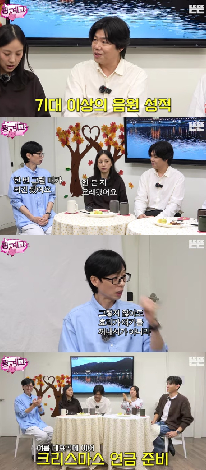 또한 이효리는 "싹쓰리는 다시 안 뭉치냐. 지훈이(비)도 너무 보고 싶다. 안 본 지 오래됐다"고 했고, 유재석은 "그렇지 않아도 나름 효리한테 '어떨까'라고 얘기해보려고 했다. 지훈이한테도 얘기해 봐야 한다"고 해 기대감을 높였다. 이에 이효리는 이상순에게 "오빠 종소리 좀 넣고 겨울 노래 준비해라"라고 해 웃음을 안겼다.