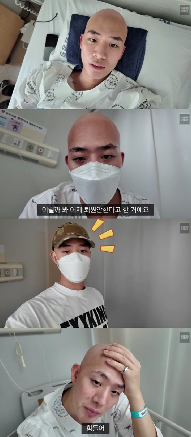 공개된 영상 속 차현승은 "골수 검사 너무 아프다. 회진 돌 때 (의사) 선생님이 한 일주일이면 수치가 오를 것 같다고 하는데 워낙 제가 오르락내리락 했어서 하루 이틀 더 지켜보자고 했다. 아무튼 그래서 퇴원이 좌절됐다. 뭔가 괜히 그냥 속상하다"라고 말했다.