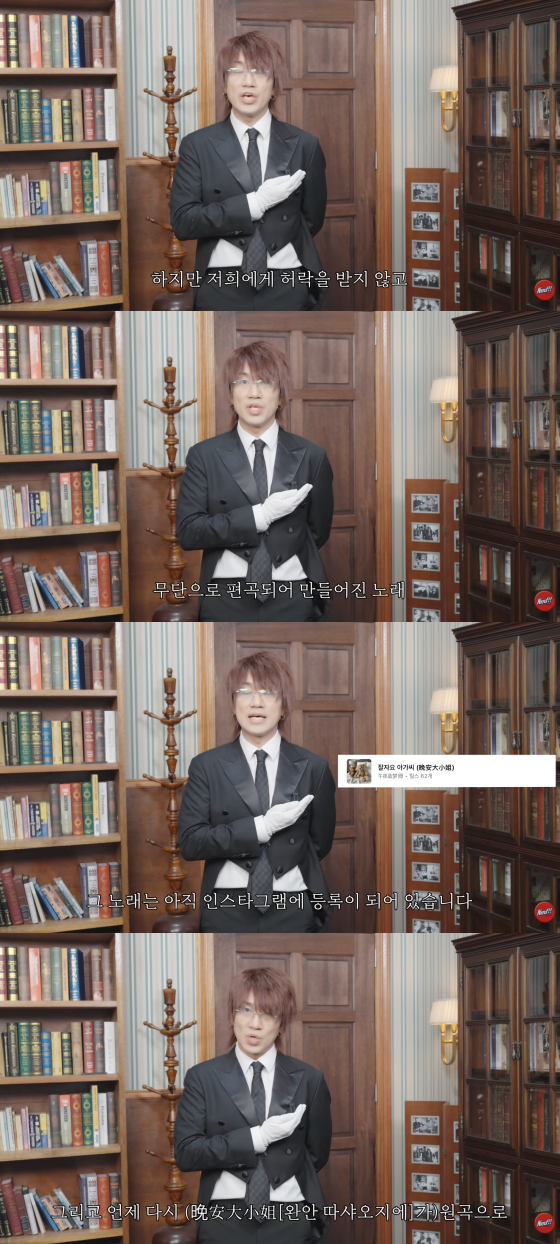 또 "이 때문에 '잘자요 아가씨'를 검색했을 때 두 곡이 함께 노출된다. 다시 '완안 따샤오지에'가 원곡으로 등록이 될 수 있다는 불안감이 아직 남아 있는 상태"라고 털어놨다.