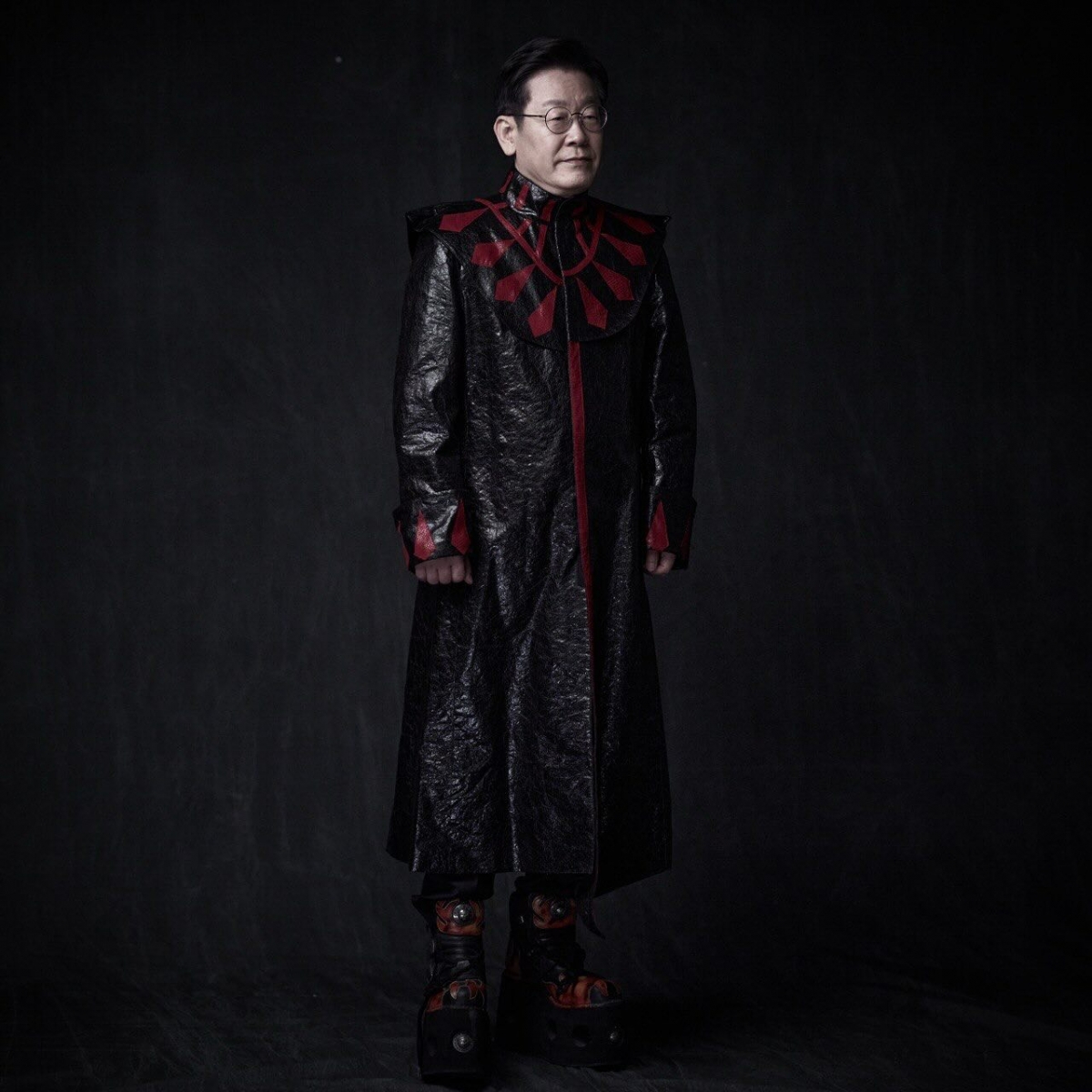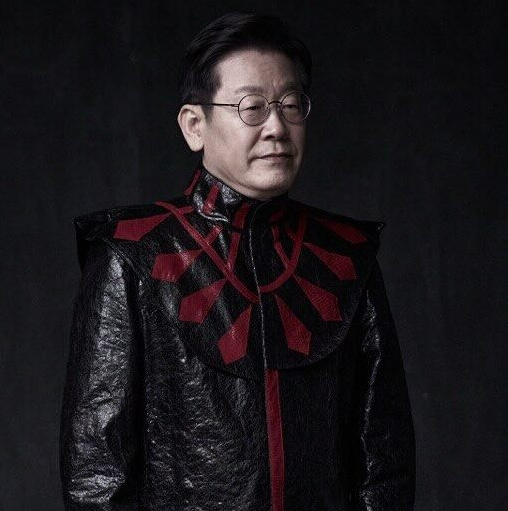 강 작가는" 이 사진은 2022년 당시 이재명 후보가, 대선 포스터 사진 작업 후, 내 개인적인 부탁을 친히 받아들여 내가 보관하고 있던 신해철 유품인 무대의상 한 벌을 입고 찍은 것이다"라는 비하인드 스토리를 들려줬다.