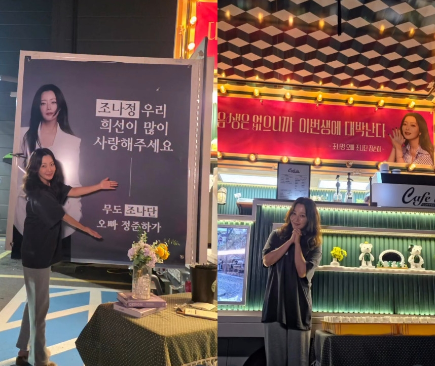 공개된 사진 속에는 정준하가 드라마 촬영장에 보낸 커피차 앞에서 포즈를 취하고 있는 김희선의 모습이 담겼다. 해당 커피차에는 '조나정 우리 희선이 많이 사랑해 주세요'라며 ''무도'(무한도전) 조나단 오빠 정준하가'라는 문구가 담겨있다.