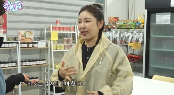 비가 쏟아지는 날씨에 사과 농장에 도착한 송가인은 "이게 무슨 난리냐. 이렇게 비가 오는데. 다른 사람들은 다 취소했을 거다"라고 투덜거렸다.