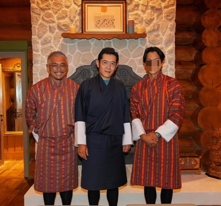 공개된 사진에는 지그메 케사르 남기엘 왕추크 부탄 국왕 옆에 서 있는 추성훈의 모습이 담겨 있다. 사진 속 추성훈은 부탄의 전통 의상을 입고 환하게 웃고 있다.