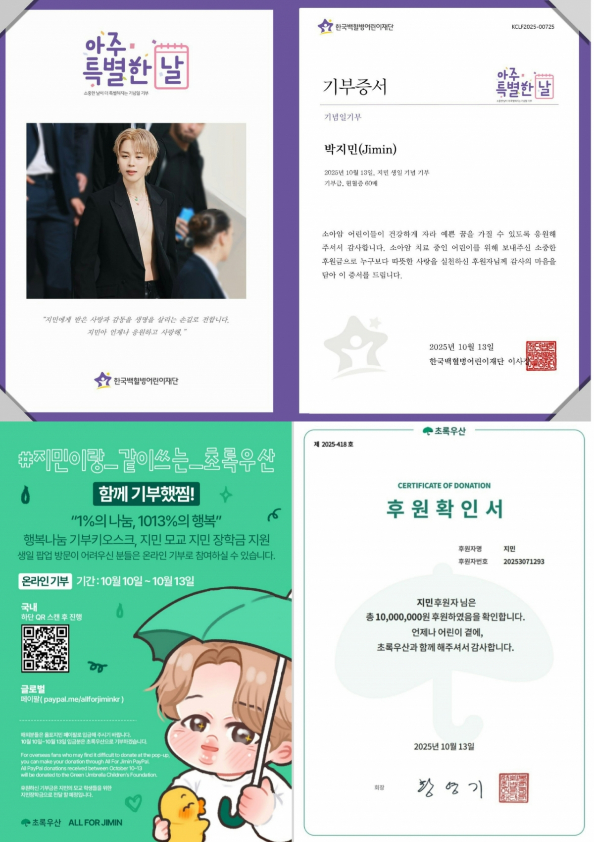 방탄소년단(BTS) 지민의 팬들이 뜻깊은 기부로 선한 영향력을 실천했다.