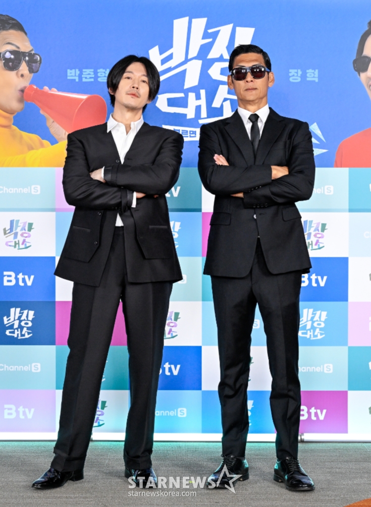 연예방송장혁-박준영 '박장대소, 콜 하세요!'[★포토]발행 : 2025.10.29 ・ 12:56이동훈 기자배우 장혁, 박준형이 29일 오전 온라인으로 진행된 채널S 예능 프로그램 '박장대소' 제작발표회에 참석해 포즈를 취하고 있다.30년 우정의 '찐친' 박준형 장혁이 시청자들의 일상을 찾아가 작지만 진심 어린 '콜'(요청)을 함께 해주는 리얼리티 예능 프로그램 '박장대소'는 오늘(29일) 첫 방송된다. /사진제공=채널S·SK브로드밴드 2025.10.29<저작권자 © 스타뉴스, 무단전재 및 재배포 금지>박장대소장혁박준형박준영브로드밴드포토추천 기사이동훈 기자기자홈좋아요 연예-방송의 인기 급상승 뉴스연예-방송의 최신 뉴스