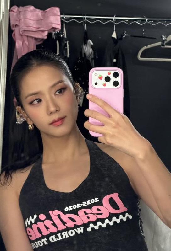 함께 공개한 사진 속엔 지수가 무대를 준비하는 모습이다. 특히 그는 민소매 시스루 티를 입어 속옷이 다 보이는 의상을 택했다. 이에 지수는 파격적인 노출로 시선을 끈다.