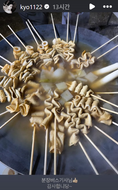 여기엔 먹음직스러운 어묵 꼬치가 담겼다. 겨울 대표적인 먹거리인 만큼 급격히 추워진 날씨를 실감케 한 동시에, 간식 차로 오가는 촬영장의 따뜻한 정을 엿보게 했다.