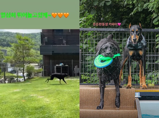 또 다른 반려견과 수영을 즐긴 사진을 공개하기도 했다. 떠나간 반려견을 그리워하는 마음이 느껴진다.