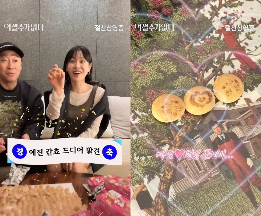 최근 손예진은 자신의 인스타그램 부계정이 복구됐다고 알리며 "'어쩔수가없다' 무대인사 하면서 성민 선배님이 찾아주신 예진 그리고 홍보팀이 찾아준 현빈"이라며 두 과자를 인증한 바 있다.