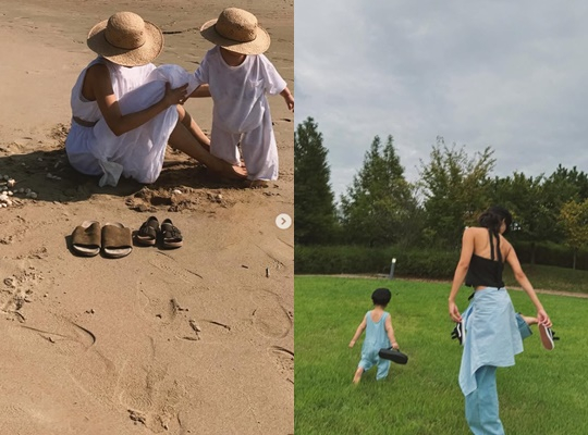 공개된 사진 속 문가비의 아들은 아장아장 걷는 모습, 벌써 뛰어다니는 모습으로 시선을 사로잡는다.