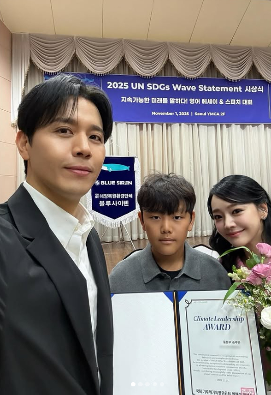 뮤지컬 배우 김소현, 손준호가 아들의 대회 수상을 축하했다.