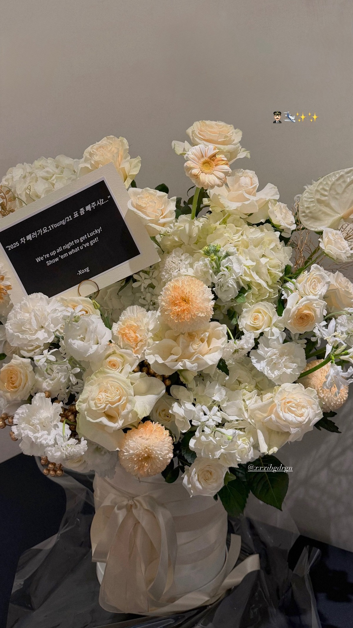 공개된 사진 속에는 지드래곤이 장원영에게 보낸 아름다운 꽃 사진이 담겨있다. 지드래곤은 장원영이 속한 아이브의 두 번째 월드 투어 '쇼 왓 아이 엠(SHOW WHAT I AM)'의 시작을 응원한 것으로 보인다.