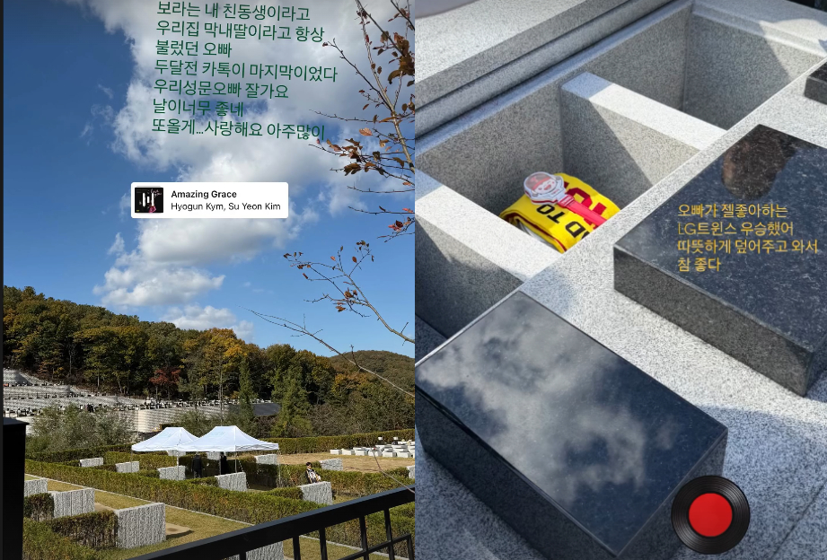 또한 황보라는 프로 야구 구단 LG 트윈스의 굿즈를 놓고 왔다며 "오빠가 제일 좋아하는 LG 트윈스 우승했어. 따뜻하게 덮어주고 와서 참 좋다"라고 덧붙였다.