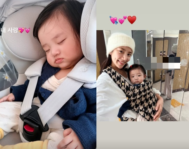 손담비는 2일 "내 사랑"이라는 문구와 함께 해이의 자는 모습을 공개했다.