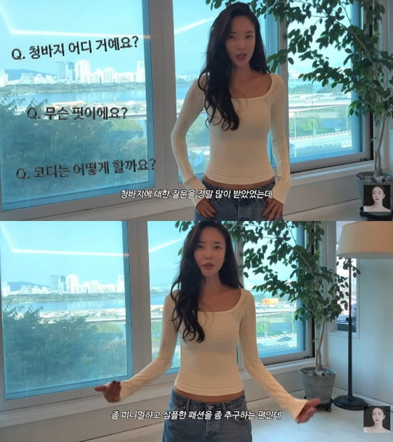 김윤지는 "제가 인스타그램에 사진을 올리거나 유튜브 영상이 올라가면 청바지에 대한 질문을 정말 많이 받는다"고 말했다.