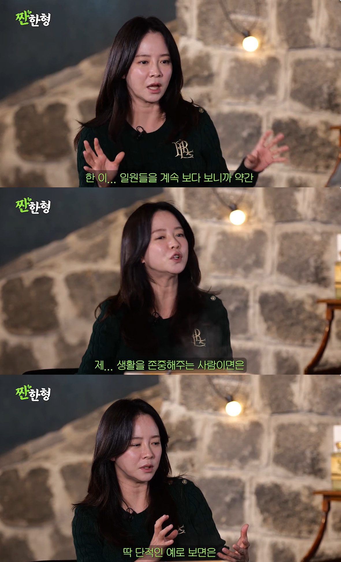 신동엽은 "(송)지효는 딱히 (결혼) 생각이 없는 거 같더라"고 하자, 송지효는 "아니다. 결혼보다 내 생활을 존중한다면 함께할 생각이 있다. 외부적인 걸로 생활 루틴이 깨지는 게 싫다. 사랑은 교집합이 있지, 합쳐진다고 생각하지 않는다. 맞으면 괜찮지만, 안 맞아도 어긋나지 않는다면 상관없다"라고 말했다.