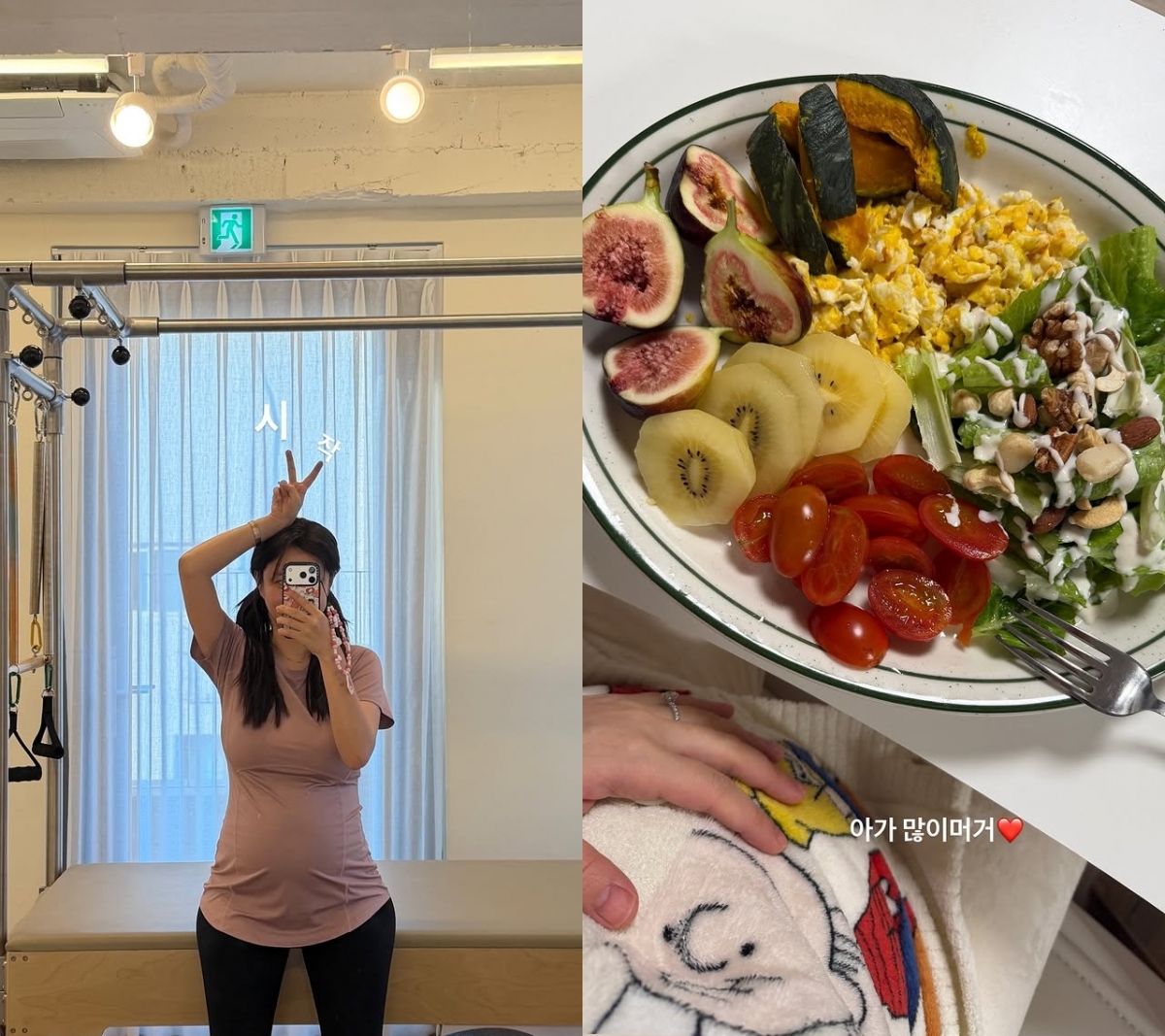 이어 은가은은 샐러드와 단호박, 과일까지 건강한 음식이 가득 담긴 식단을 공개했다. 그는 "아가 많이 먹어"라며 배에 손을 올리고 있는 사진을 공개해 훈훈함을 안겼다.