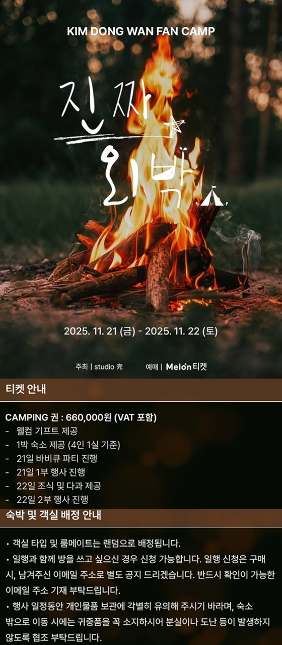 그룹 신화 멤버 겸 배우 김동완이 티켓가 66만 원의 '팬 캠프'를 마련했다.