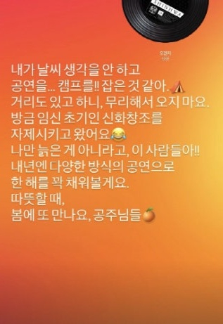 이어 그는 "내년엔 다양한 방식의 공연으로 한 해를 꽉 채워보겠다. 따뜻할 때, 봄에 또 만나요, 공주님들"이라고 덧붙였다.