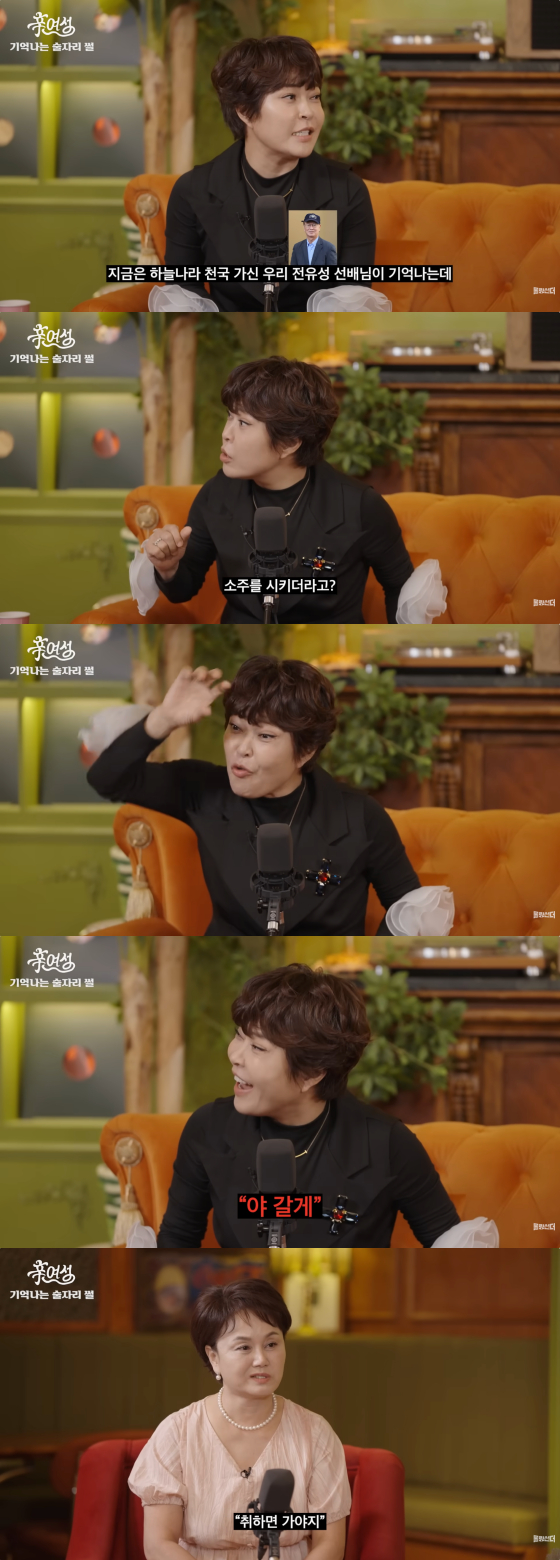 코미디언 조혜련이 고(故) 전유성과의 술자리 추억을 떠올렸다.