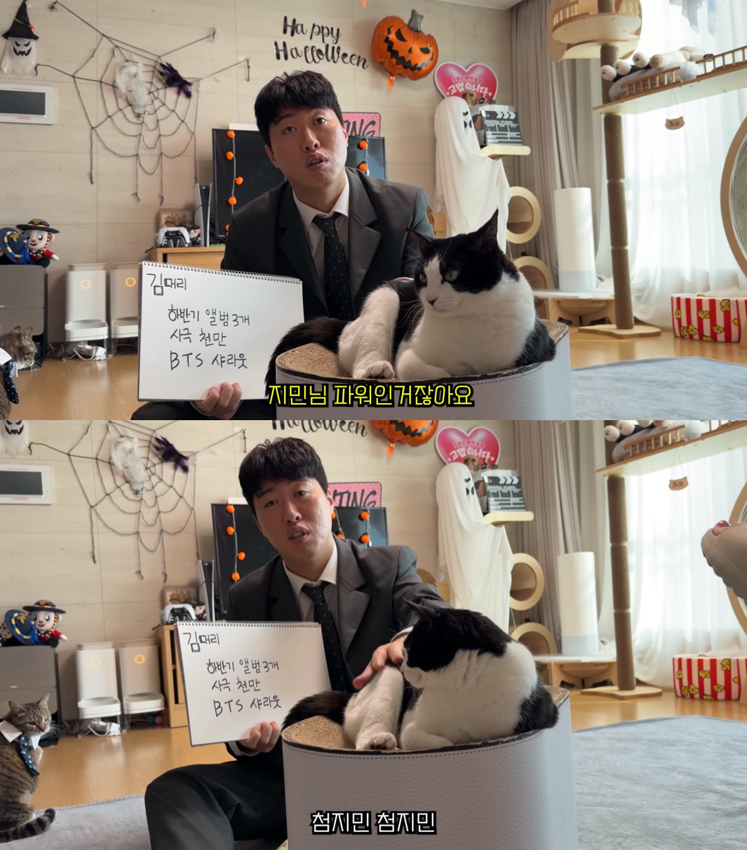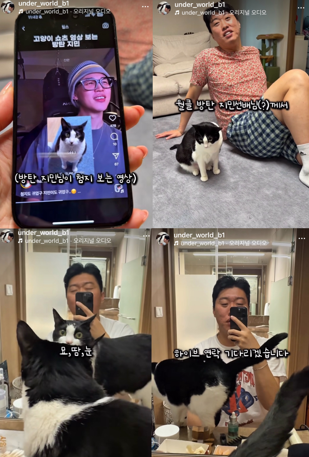 지민은 지난 10월 13일 위버스 생일 라이브 중 "요즘 쇼츠를 자주 본다"며 고양이 영상을 잠깐 시청했는데, 팬들은 짧은 소리만 듣고 영상의 주인공을 찾아냈다. 그 속에 등장한 이는 다름 아닌 유튜버 '언더월드'의 고양이 첨지였다.