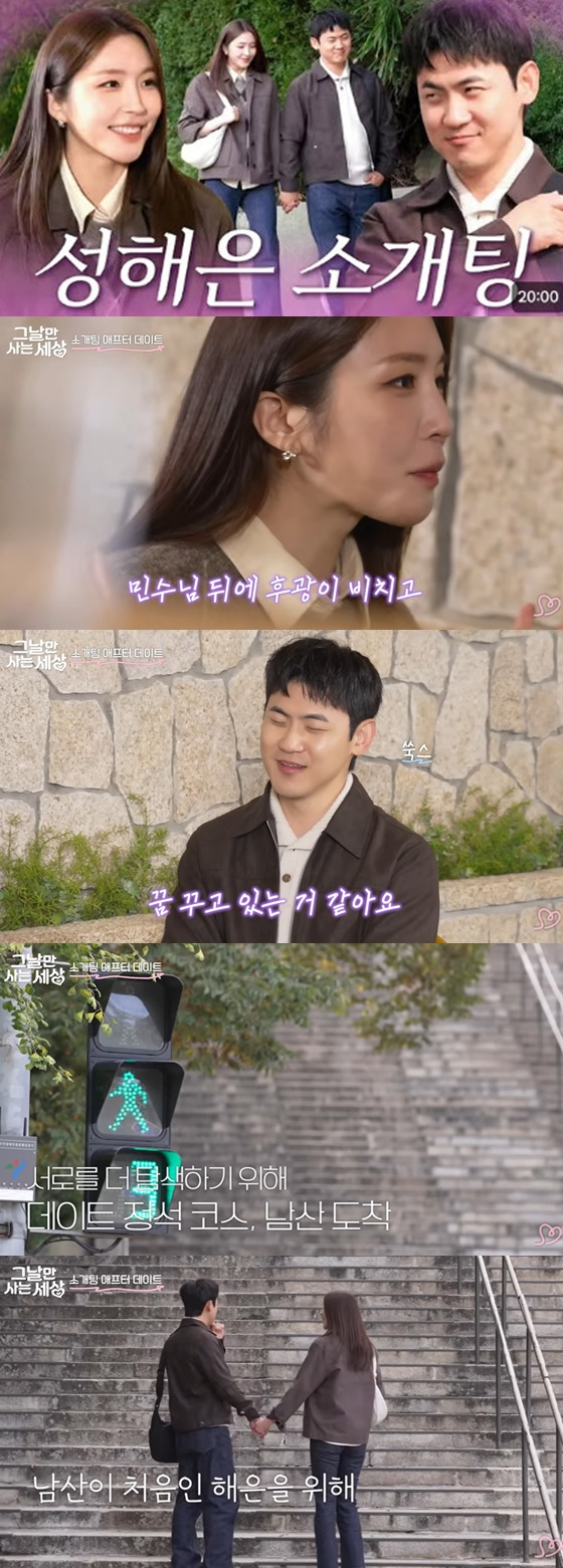 알고 보니 유튜브 채널 '티키타카스튜디오'의 콘텐츠 '그사세'(그날만 사는 세상) 에피소드 3편에 게스트로 출연한 것. 이에 성해은은 김민수와 소개팅 콘셉트의 페이큐 예능을 찍었다.