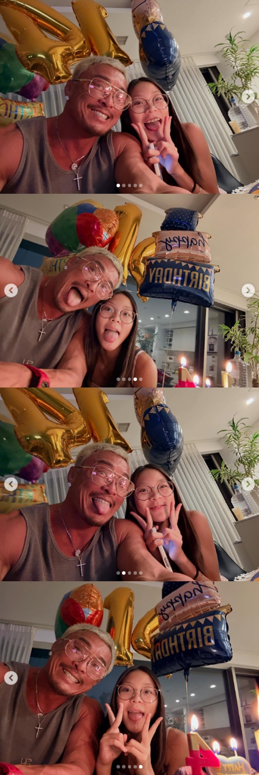 공개된 사진 속 추성훈은 생일을 맞은 사랑과 환화게 미소를 짓고 있다.