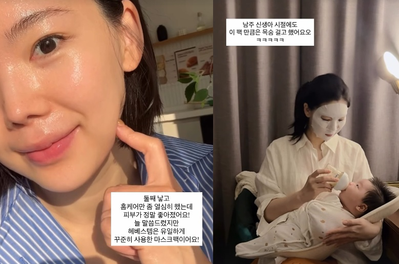 이다은은 6일 자신의 셀카와 함께 "둘째 낳고 홈케어만 좀 열심히 했는데 피부가 정말 좋아졌어요"라며 "남주 신생아 시절에도 이 팩만큼은 목숨 걸고 열심히 했다"라고 밝혔다.