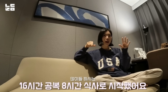 이다은은 "16시간 공복을 지켰다. 16시간 동안 커피랑 물 같은 건 마셨다"라며 "유일한 낙이 아이스 아메리카노였다"라고 말했다. 이어 "아침에 일어나시면 아침을 건너뛰시고 점심 때부터 식사하면 된다. 나는 당시 12시에 첫 끼를 먹었다. 간헐적 단식을 하실 때는 군것질은 독하게 끊어야 한다"라고 조언했다.