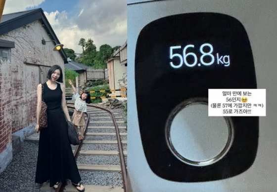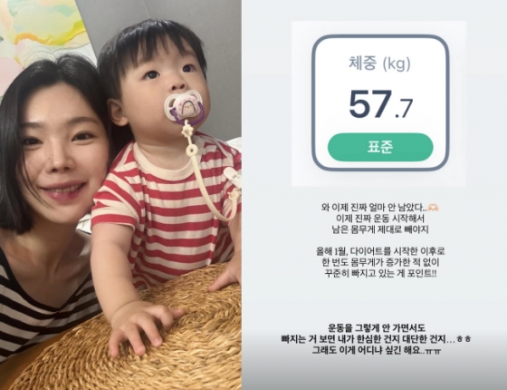 이어 "보조제는 전혀 안먹었다. 다이어트 보조제 도움은 전혀 안 받았다"라며 "식욕 억제 때문에 도움 받으시는 듯한데 간헐적 단식을 하다보면 은근 식욕이 준다"라며 "현재 키 170cm, 몸무게 59kg이다. 임신 직전까지 3-4kg 더 빼야 한다. 임신 직전도 55kg였는데 운동 안한 몸이라 탄탄함이 전혀 없고 흐물거리는 느낌이었다. 피티 쌤이 근육이 잘 안 붙는 몸이라고 하셔서 좌절"이라고 전했다.