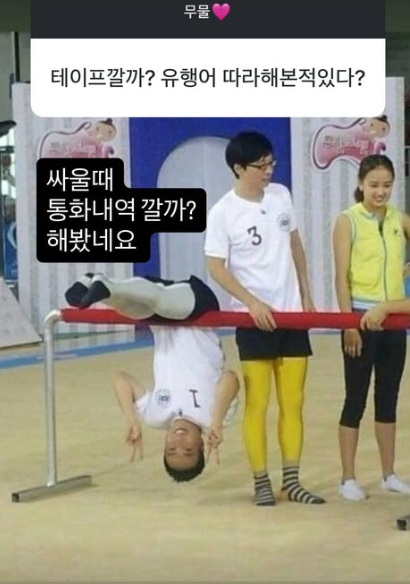 22기 현숙은 또한 16기 광수의 유행어 '테이프 깔까'에 대한 질문도 받고 "싸울 떄 '통화내역 깔까' 해봤다"라고 답했다.