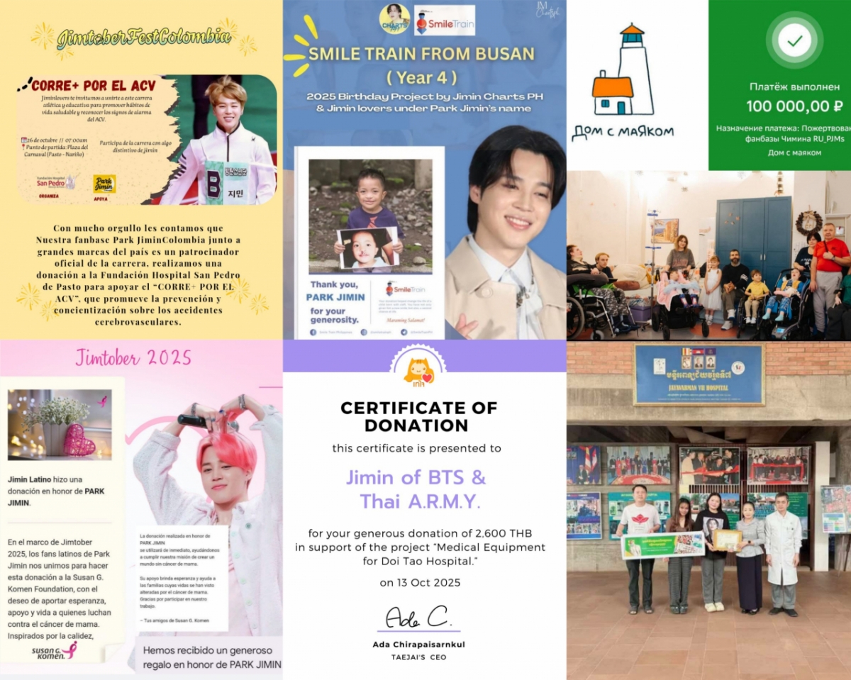 태국 팬들은 지민 생일 축하 행사 'Jimin BDay In Chiangmai 2025'에서 모금된 기금을 도이타오(Doi Tao) 병원 의료 장비 지원 프로젝트에 기부하였고, 캄보디아 팬들은 쿤타보파(Kuntha Bopha) 어린이 병원에 기부금을 보내는 등 2025년 짐토버를 의미 있고 기억에 남는 시간으로 만들었다.