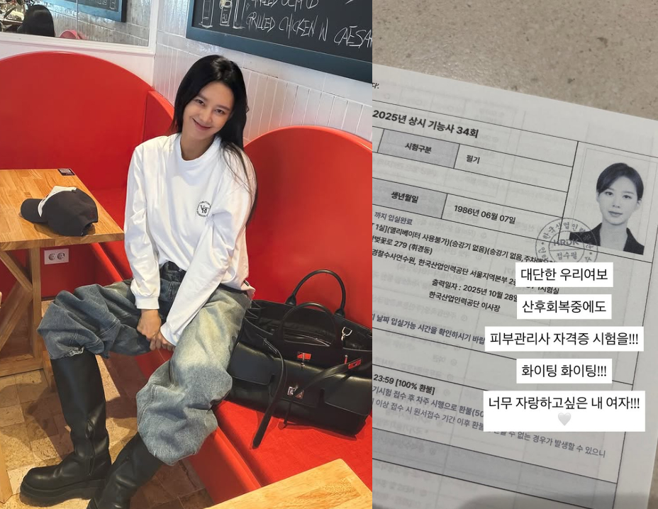 앞서 지소연은 "우리 집 산후도우미 선생님이 피부 미용사 자격증을 준비하고 계셨는데 그 모습을 보며 오래된 기억이 떠올랐다"면서 "다시 호기심이 피어올랐다. 남편의 민감한 피부, 아이들의 태열, 그리고 나의 노화 피부까지 더 알고 싶어졌다"면서 피부 관리사 자격증 시험을 공부 중인 모습을 공개한 바 있다.