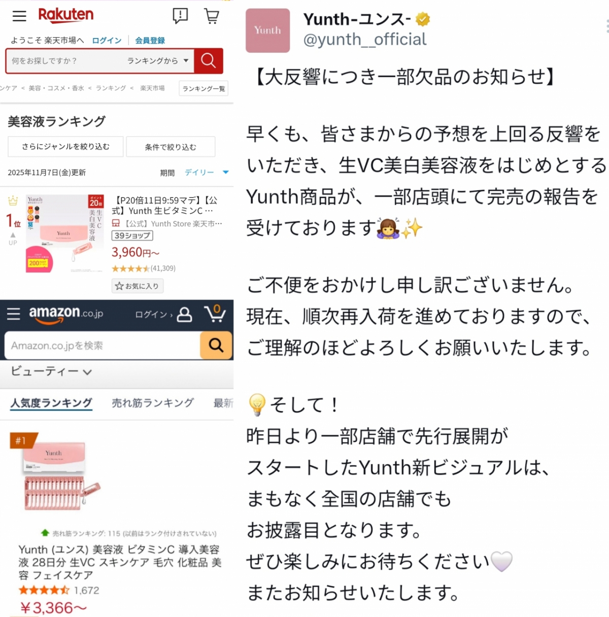 온라인 판매처뿐만 아니라 오프라인에서도 폭발적인 판매량을 이어갔다. 윤스 공식계정은 6일 "예상을 넘는 반향으로 윤스의 제품이 매장에서 매진됐다는 보고를 받았습니다. 불편을 끼쳐 죄송합니다. 현재, 순차적으로 재입고를 진행하고 있으므로 이해해 주시면 감사하겠습니다"라는 공지를 게재했다.